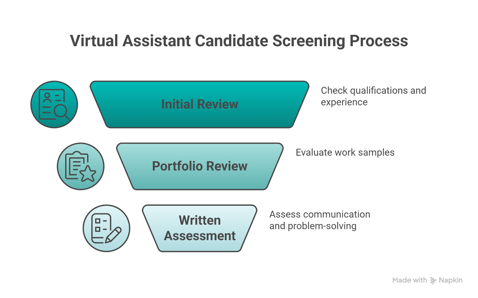 Portfolio and work sample review (10 minutes per candidate): Evaluate actual work examples. For administrative VAs, look for organizational systems and attention to detail.