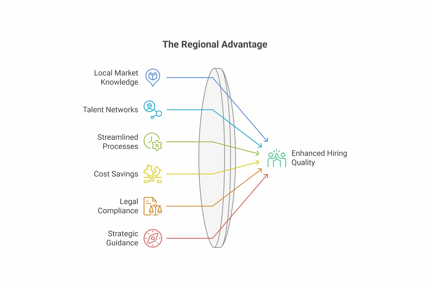 When expanding into new markets, hiring through a regional recruitment agency often delivers better results than working with global firms. Regional agencies bring specialized local knowledge, established talent networks, and cultural insights that generic international recruiters simply can't match.